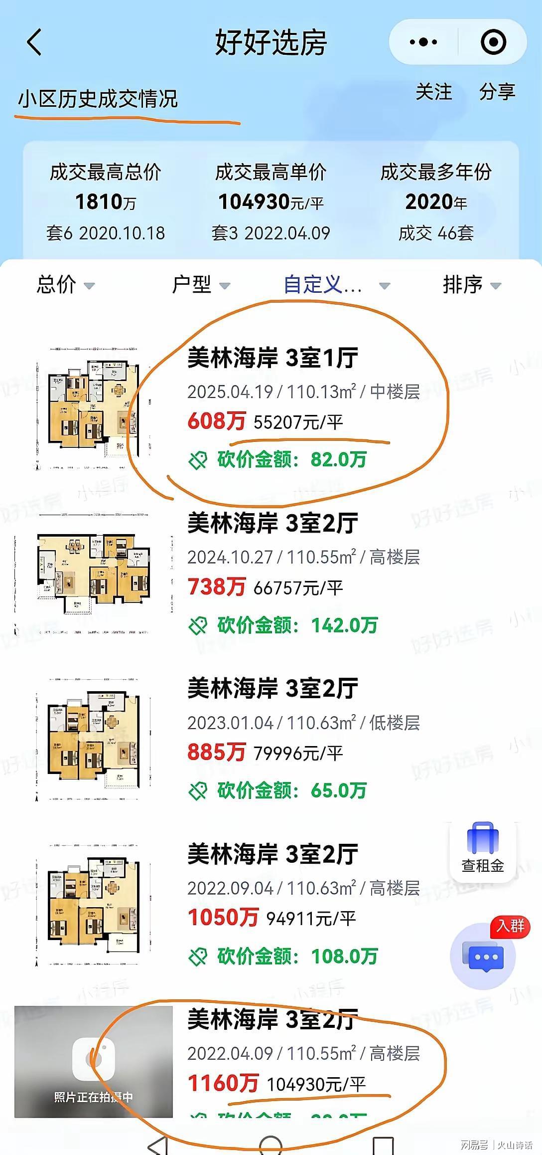 根据该网友提供的信息,这是该小区历史成交情况的截图。