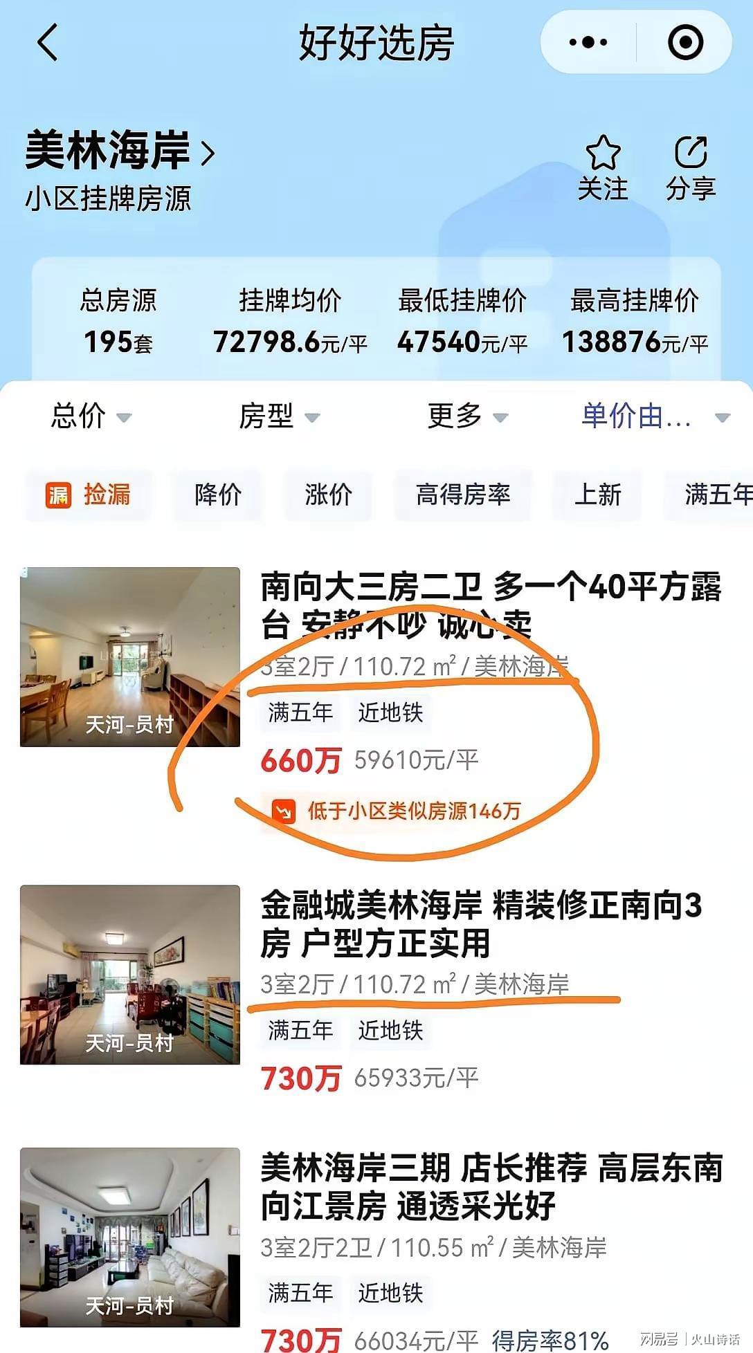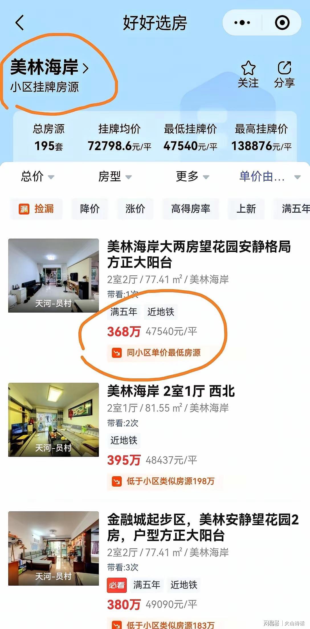 其实,这不是个案,是美林海岸乃至整个天河员村板块的集体裸泳。挂牌195套、最低4.75万/平,说明卖家急着跑,却没人接盘。