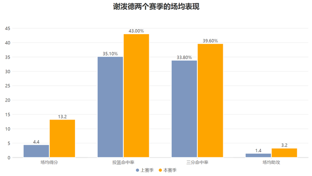 对于谢泼德即使是支持火箭的人也对他褒贬不一,他某些时候能够突然爆发拯救火箭于水火,有时候也能投不进+防不住完全负面作用,对阵奇才时谢泼德虽然命中率不高但以19分10助攻6抢断的表现扛起了火箭,即使是本赛季的他各项表现也均在稳步上升,而近10战的谢泼德更是渐入佳境: